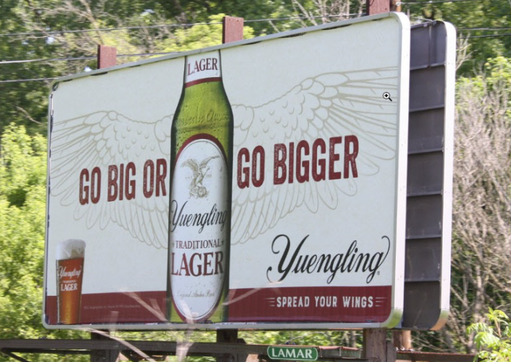 I was driving earlier this week and noticed a couple of Yuengling billboard ads. Billboards are hard to do as the good ones contain 7 words or less. It seems the Yuengling tagline is “spread your wings,” which until further notice with be their brand strategy claim. (A brand strategy is one claim, three proof planks.) Yuengling is America’s oldest brewery, but that proof shouldn’t get in the way of a fallow claim like spread your wings. Everyone wants to spread their wings, no?